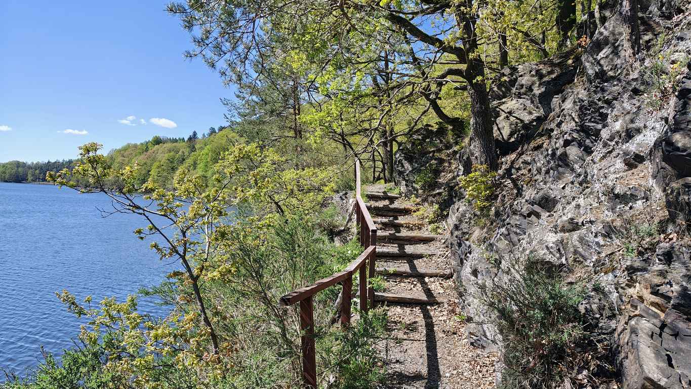 Nasz plan zakłada dotarcie do zamku pieszo z Gryfowa Śląskiego. Jest tam łatwy szlak o długości ok. 14 km, który prowadzi wzdłuż brzegu jeziora Złotnickiego. Wcześniej jednak musieliśmy dotrzeć tam pociągiem z Wrocławia, z przesiadką w Lubaniu.