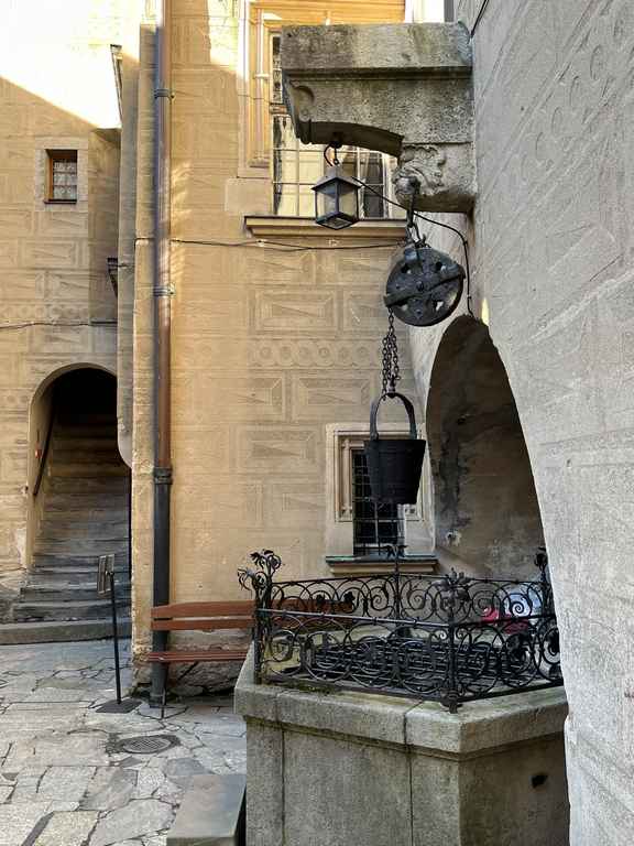 Stąd mamy już zaledwie 1 km czyli jakieś 17 minut spaceru do bramy zamku. Na miejsce docieramy dokładnie o godzinie 16:30. Meldujemy się w recepcji i odbieramy klucze do naszych pokoi.